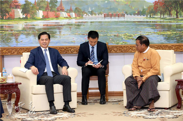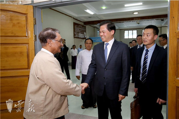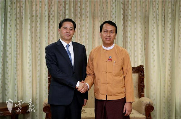 陈豪说,云南省要发展,优势在区位,出路在开放。在共建“一带一路”中,将首先深化与缅甸的合作。陈豪提出五点建议,一是加快推进中缅经济走廊建设进程,尽快启动中缅边境经济合作区和皎漂工业园区建设等项目;二是推动滇缅互联互通,合力推进云南瑞丽经曼德勒至仰光及皎漂道路建设;三是推动能源、电力合作,缓解电力紧缺状况;四是推动双方教育、医疗、减贫等社会事业合作,造福两国人民;五是合力维护边境稳定,为两国发展营造和平环境。陈豪表示,云南人民与缅甸人民胞波情深,真诚希望缅甸国家和平、民族和睦、人民安康。