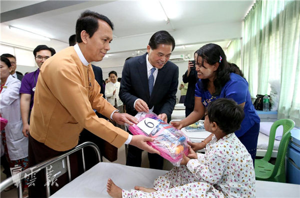12月5日,陈豪与仰光省行政长官漂敏登一同到仰京儿童医院,看望在云南接受先天性心脏病救助的复诊患儿。