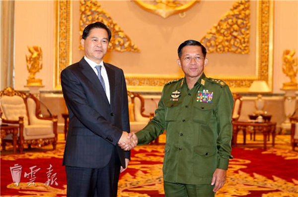 12月4日,陈豪在内比都拜会缅甸国防军总司令敏昂莱。