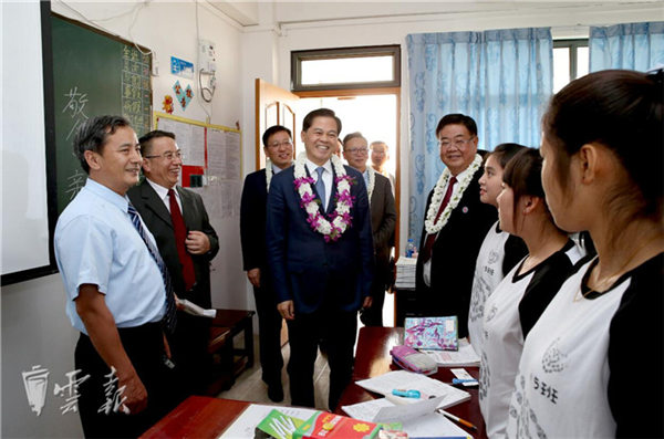 12月2日,陈豪一行来到曼德勒云华师范学院与师生亲切交谈,了解学院教学情况。