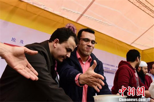 图为 埃及留学生邀请品同学们来品尝本国特色美食。 罗永皓 摄