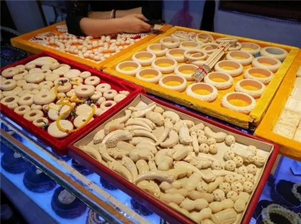 老挝沉香阁工艺品店里摆出来的象牙制品