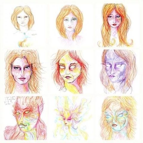 一位女插画师吃了“邮票”之后,连续为自己画下多幅自画像。
