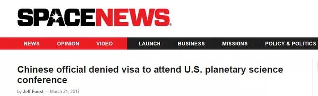 2017年3月21日,美国Spacenews门户网站就曾报道,美国驻北京大使馆拒绝向负责中国月球和火星开发计划的一名专家发放签证。