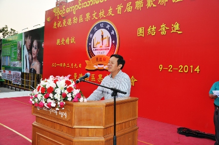 郁伯仁总领事在讲话中提出此次曼德勒区果文校友联谊会的成立,标志了将为大家的团结合作,以及华文教育进步发展做出新的努力。接下来腊戌、仰光、果敢、台湾区果文校友会的各会长分别上台讲话。