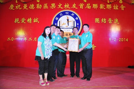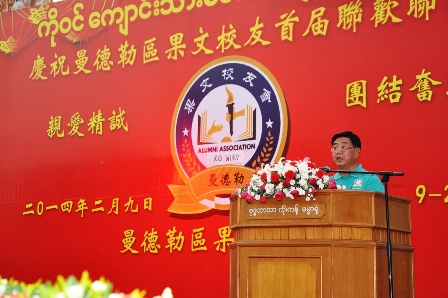 2014年2月9日,下午6时,曼德勒区果文校友会于果敢会馆举行“亲爱精诚、团结奋进”为主题的曼德勒区校友首届联欢联谊会。中华人民共和国驻曼德勒总领事馆郁伯仁总领事、领事、曼德勒各侨团侨校代表以及腊戌区、仰光区、果敢区、台湾区的果文校友700余人应邀参加联欢会。