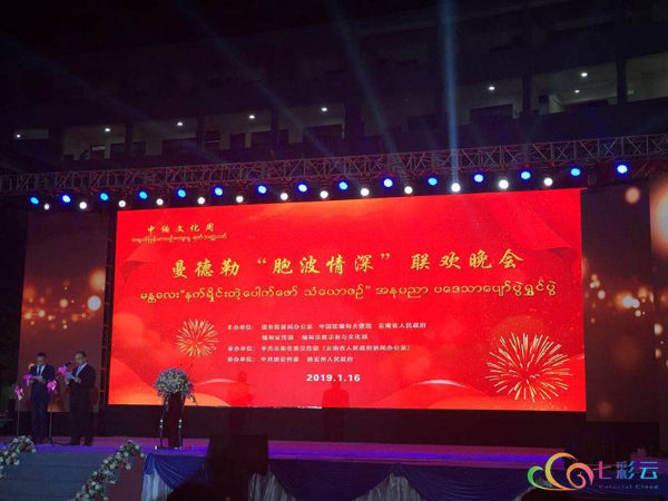 由德宏金孔雀艺术团、曼德勒文艺团体、当地华侨联袂带来的《胞波情深》联欢晚会,将全天的文化交流活动推向了高潮,《共饮一江水》、《彼此情无限》、《明天更美好》 三个主题章节,融合了中缅两国经典的民族歌舞节目,为现场观众献上一场欢快的文化盛宴。