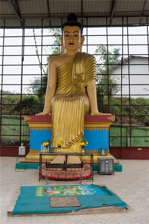 不过,在一些佛像面前也能看到一些香炉等物件,据说这些都是主要给一些华人使用的。缅甸有大量的华人,在与中国云南接壤的北部城市木姐更是有超过百分之二十的居民都是华人。所以,这里的佛教寺庙既有供奉鲜花的花瓶也有供奉香的香炉。