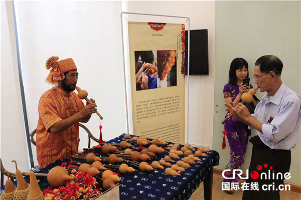 葫芦丝制作演奏非遗传承人哏从国和缅甸友人合奏。