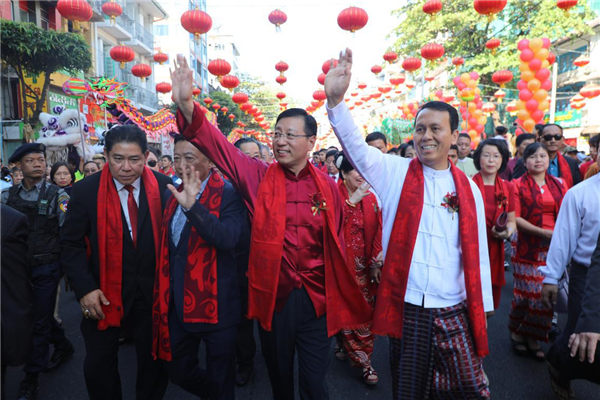 仰光省省长吴漂民登对本次唐人街新春庆典活动表示热烈祝贺,并向缅甸全体华人华侨致以诚挚的节日祝福。他表示,缅甸正在推进国家转型,在此过程中,我们将同世界各国友好合作,实现国家发展。缅甸是一个多民族和谐共存的国家。今天在唐人街举行的春节庆典,是各族人民平等友爱、和谐共处的最好证明。仰光是缅甸的经济中心,对国家发展具有重要带动作用。我们重视华人华侨在缅甸经济发展中发挥的重要作用,将同各方紧密合作,推动仰光在新的一年取得更大发展。缅甸高度重视发展缅中关系,将继续推动两国关系不断向前发展,深化双方在“一带一路”和缅中经济走廊框架下的合作,实现双方共同发展。