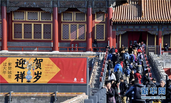1月25日,游人在故宫内参观游览。自1月上旬起,故宫博物院举办“贺岁迎祥——紫禁城里过大年”展览。新华社记者 李欣 摄