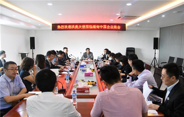 洪亮大使赴缅甸中国企业商会调研和座谈