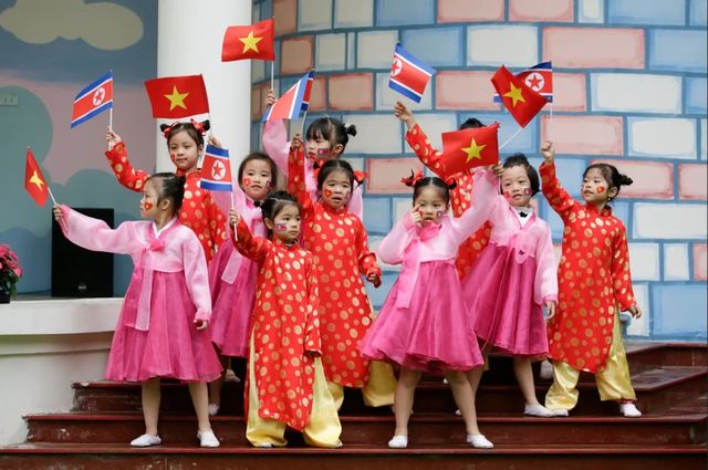 此外,河内至今还有一所“越朝友谊幼儿园”。1975年越南战争结束后,百废待兴的越南急需外部援助,可面对西方封锁,最终还是只有社会主义国家伸出援手。当年朝鲜不光接收大批越南技工来深造,同时积极协助越南发展教育事业,1978年3月8日成立的河内越朝友谊幼儿园就是代表工程。这所长年有500名儿童生活的幼儿园始终开展特色教育,每逢佳节,许多孩子都穿上朝鲜传统服装练习表演节目。幼儿园园长向法新社表示:“我们热烈欢迎金正恩委员长访问越南和我们的幼儿园。”