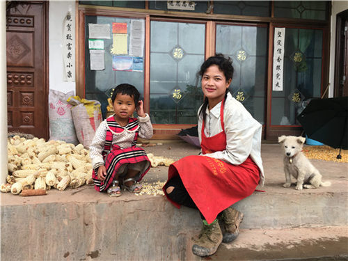 村里人都叫她“mai青梅”(德昂族用mai+大孩子的名字来称呼嫁为人妻的女人),15岁跟人家从缅甸来这边寨子里玩,就这样稀里糊涂嫁做人妻,生了青梅。这天农忙时,mai青梅在剥玉米,青梅在旁玩,家里的小白狗乖乖的守在一旁。