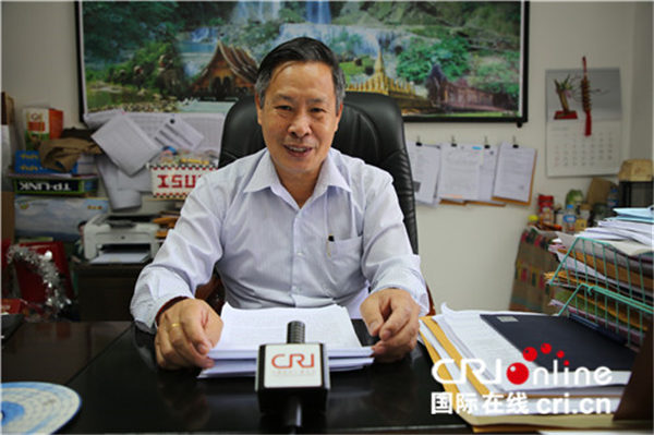 老挝国家广播电台台长颇西·乔哈尼冯接受记者采访。