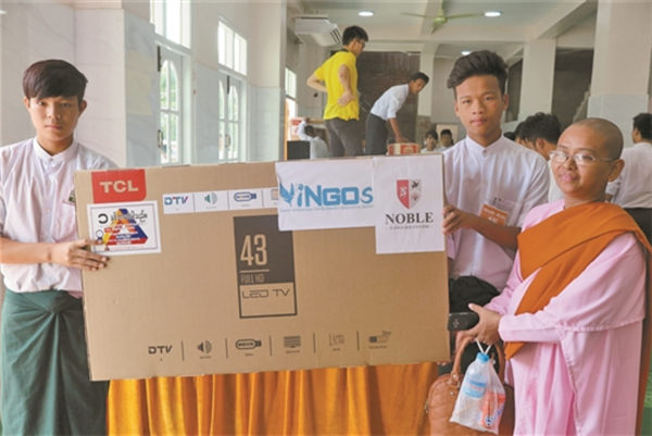 2017年以来,云南省国际民间组织合作促进会(以下简称云南民促会)在云南省商务厅的支持下,在缅甸执行了3期“一寺庙一电视”项目,向234座寺庙捐赠电视设备,并为其购买卫星电视服务,惠及仰光约11万僧侣及儿童。项目获得了较好的社会效应,有力深化了中缅两国民众传统而深厚的胞波友谊。