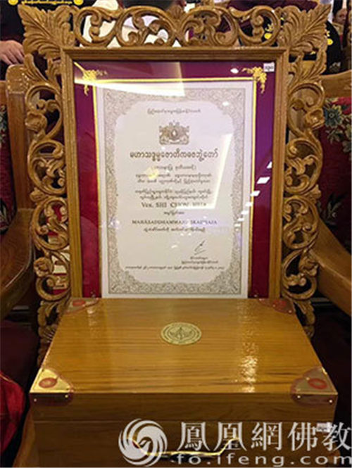 缅甸宗教勋章是由缅甸联邦共和国总统亲自签署颁发的国家最高奖项之一,在缅甸国内有重要影响力。获得该勋章的大师具有杰出的修为、造诣及成就,德高望重、品行卓越,并对佛教事业有重大贡献、对佛学研究及讲经说法有重大影响,是世界各国的佛教界的重要人物。(凤凰网佛教通讯员李永健)