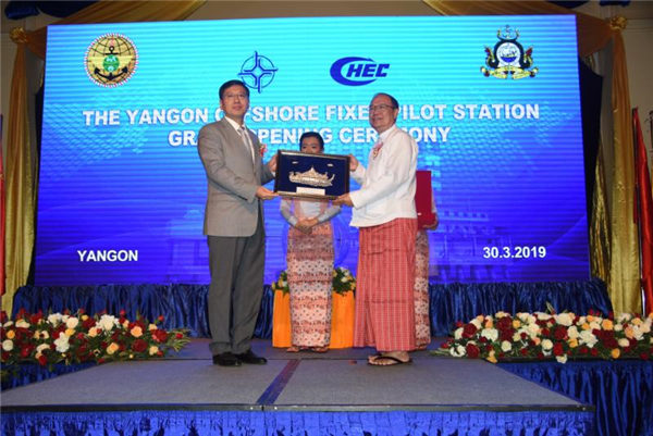 缅甸港务局长尼昂介绍了项目招标及施工过程和项目的主要技术参数,表示引航站位于仰光河入海口西南外海约20海里处,主要作用为外国船舶经仰光河入港提供引航服务,整个引航站主体结构可供1500吨油轮靠泊。尼昂强调引航站建设如期顺利完成,这对引航员的工作和安全保护都起到非常重要的作用,可以更加便捷地引导各国来往仰光的船舶,改善和提升缅甸的经贸条件。