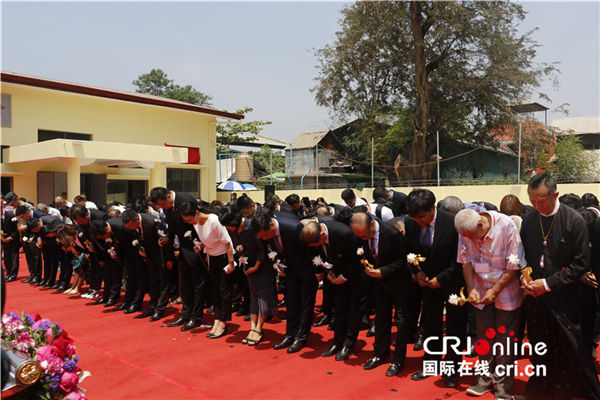 中国驻缅使馆、旅缅中国远征军后裔、缅甸华人华侨等各界人士在中国远征军纪念碑前鞠躬默哀