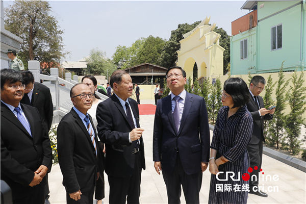 戴安澜将军之子戴澄东(左三)和中国驻缅甸大使洪亮(左四)参观中国远征军浮雕