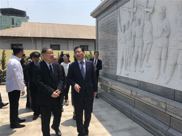致辞结束后,洪亮大使与全体人员手持菊花,瞻仰远征军纪念碑和浮雕,参观了“远征军同古抗战陈列展”,并与参加祭扫活动的各界人士座谈交流,接受媒体采访。
