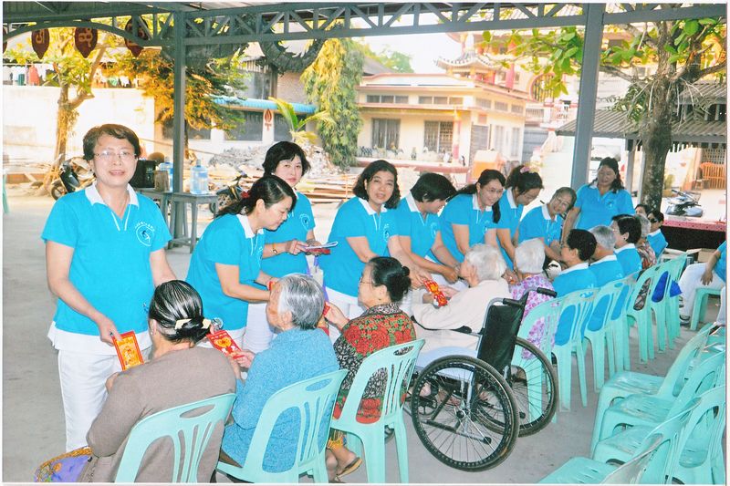 之后,庆祝节目开始;在悠扬悦耳的乐声中,妇女们载歌载舞,别看她们有的巳年逾不惑,但跳起舞来,还是那样多姿多彩,仪态万千。接下来的活动节目,是发放敬老红包;此次康乐组邀请了本地二十五位古稀以上年纪的老人,组员们向老人亲密问候寒暄后,向老人敬上礼物红包。老人们感谢的言语和善意的祝福声,佈满了整个会场,人与人的情感交流,至此步入高潮。