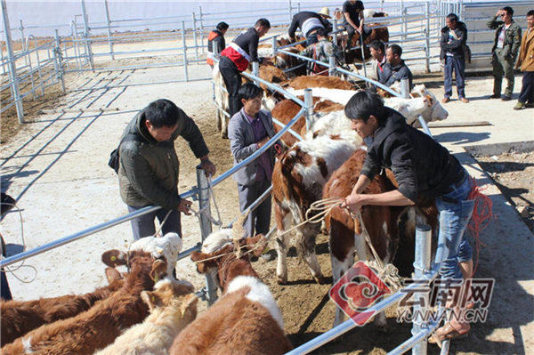 龙陵建档立卡贫困户领取扶贫牛 云南日报供图