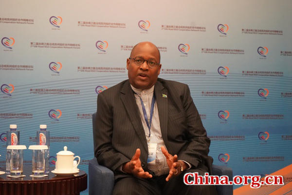 坦桑尼亚坦中友好协会秘书长约瑟夫•卡哈马(Joseph Kahama)接受中国网记者采访。[中国网 鲁娜 摄]