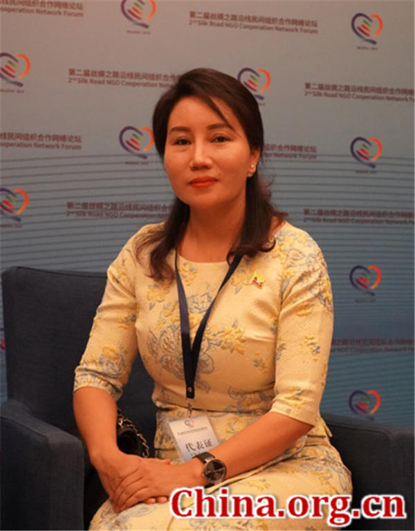 缅甸缅中交流合作协会执行理事陈美娟表示自己是第一次参加丝绸之路沿线民间组织合作网络论坛,非常感谢合作网络这个平台,让各国民间组织和中国社会组织一起交流经验,寻找合作发展的机会。她表示“一带一路”倡议为缅甸带去了大量的变化,其中最明显的是旅游行业。2018年下半年开始缅甸旅游业迅速发展,中国到缅甸直飞的航班不断增加。中国游客使缅甸的酒店、餐饮、购物等行业明显受益。