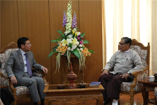5月15日,驻缅甸大使洪亮在内比都辞行拜会缅甸国务资政府部部长觉丁瑞。