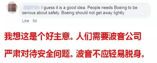 这也正如一位网友所说:人们需要波音公司严肃对待安全问题。波音不应轻易脱身。