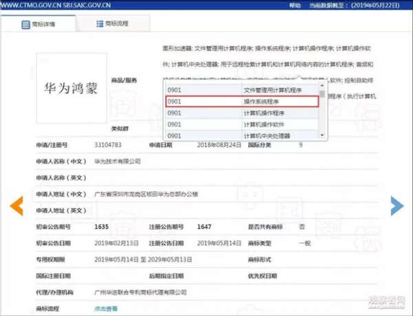 5月24日,中国国家知识产权局商标局网站显示,华为已经申请注册“鸿蒙”商标,并标注该商标用于操作系统程序,这表明华为迈出了构建自主操作系统的第一步。