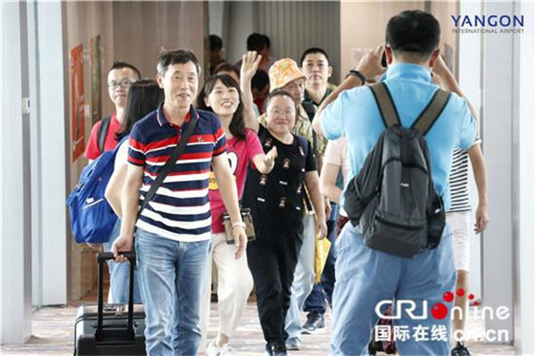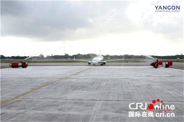 首航航班乘客抵达仰光