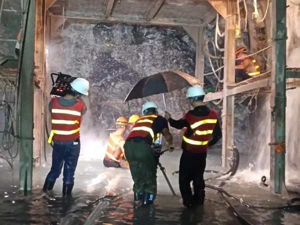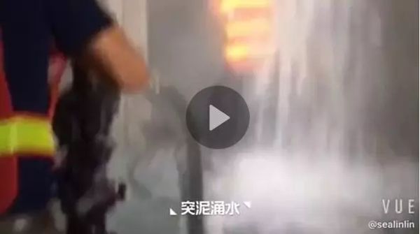 视频截图:大柱山隧道建设期间:突泥涌水、岩层破碎、高地温