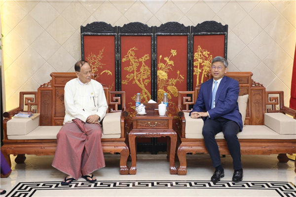 6月28日,驻缅甸大使陈海在使馆会见缅中友好协会主席盛温昂,接受缅中友好协会向中国四川宜宾地震灾区捐款。