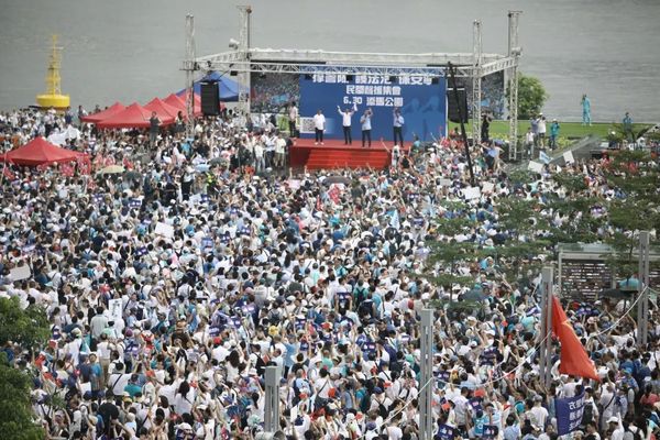 虽然天降暴雨,但仍有不少市民风雨无阻,前来参加撑警集会,为警队加油。人数远远多于何君尧此前预估的2000至3000人。下午3时集会开始后,参加者站满添马公园。
