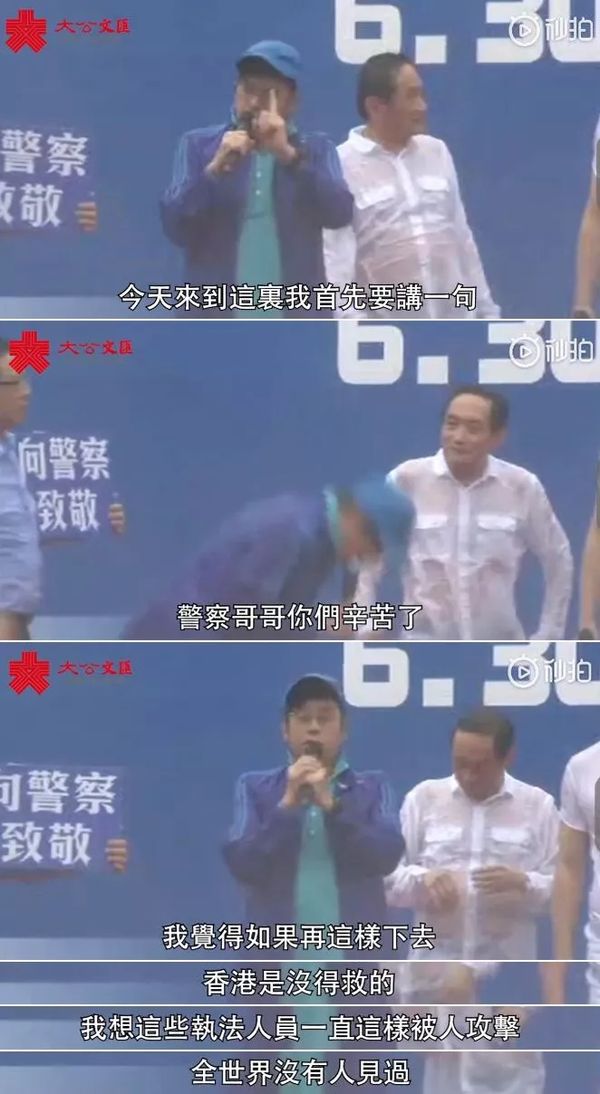 谭咏麟上台发言称,自己“生于斯长于斯”,见证香港由渔港成为国际大都会,近日辛苦警方,认为若警察再受如此对待,长此下去“香港没得救”。