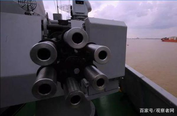 有趣的是,“江喜陀“级护卫舰上,来自朝鲜的元素更多了几分。除了之前缅甸护卫舰上引人猜测的6联装近程防空导弹系统之外,该级舰在舰桥两侧分别配备了一座6管14.5毫米转管机枪。这种充满“主体”意味的装备与其说是作为末端防空武器,可能更适合承担一般在低烈度作战任务。