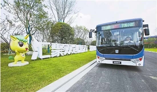 ▲图为在杭州未来科技城展示的5G智慧公交。(新华网)