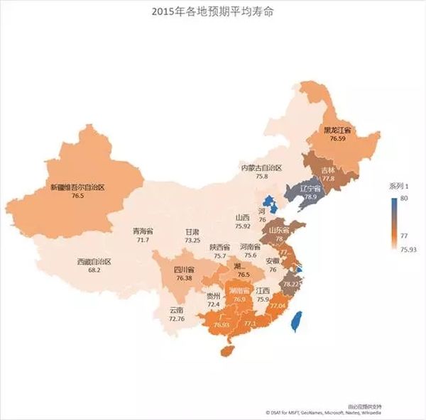 2015年人均预期寿命地图(包含港澳台)