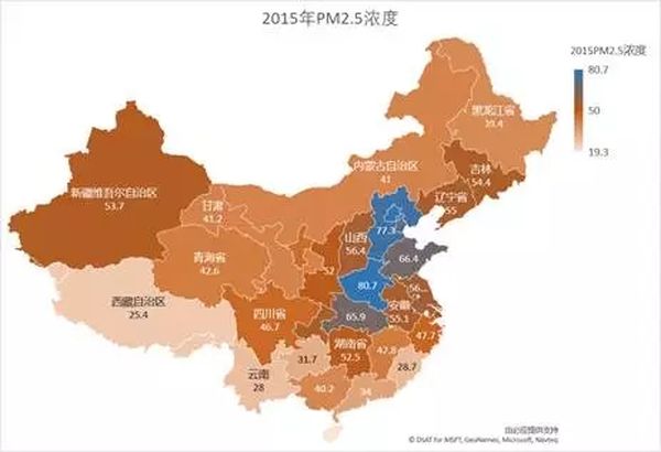 2015年东部沿海和环京地区成了雾霾重灾区