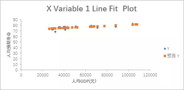 经过回归分析,我们发现,人均预期寿命确实会随着人均GDP的增长而升高,这也正好印证了经济越发达的地方,人们越活的久的规律。同时,回归分析发现,人均GDP每增加1万元,预期寿命大约能够增加0.94岁。