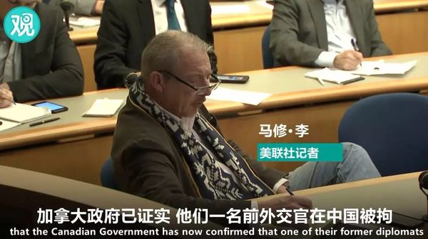 马修仍不依不饶地追问说,但你不觉得中国有正当的理由拘留加拿大前外交官吗?发言人对此则表示,“建议去问加拿大和中国政府逮捕的原因”,之后便匆匆结束了提问。