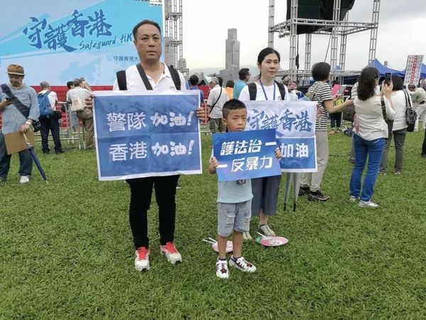 一名外籍面孔的女孩与父亲一起参与集会引起《环球时报》记者注意,她告诉记者,自己生在香港,父亲来自乌干达,他们来这里就是为了支持政府,支持国家。她的父亲表示:“我们支持法治,秩序,和平。香港是一个非常多元化的城市,应该可以包容不同肤色和不同的政见,我们希望大家都能和谐相处。”