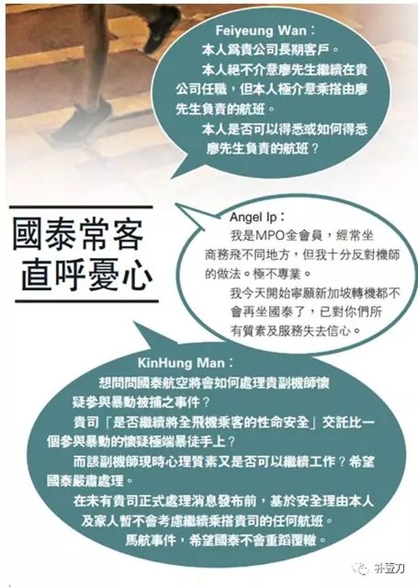 这样偏激的飞行员,一时间,很多人很害怕坐到他开的飞机,有人询问国泰,但国泰却说,“因私隐关系”,拒绝评论。
