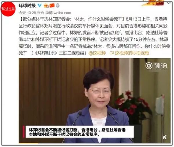 而在过去两天,这些所谓的“记者”更是在警方以及港府的新闻发布会上表现得极为夸张,不仅完全不给警方或港府说话的机会,多次粗野地打断发言,甚至完全扔掉了记者的职业操守,跟着暴徒们一起辱骂起香港特首林郑月娥,在记者会上公然问她什么时候“去死”…….