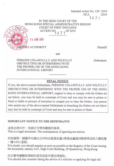 香港高等法院一纸禁令,拯救了香港机场 | 附临时禁令原文