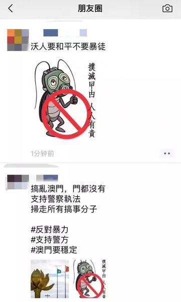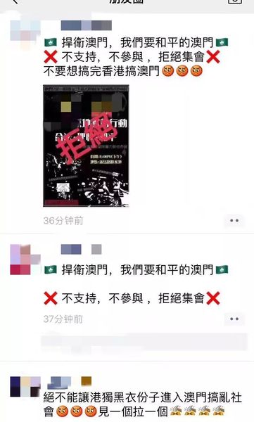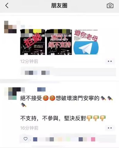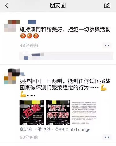 通过以下这些朋友圈,我们可以感受到澳门同胞,对祖国的热爱,和维护澳门和平安定的决心。