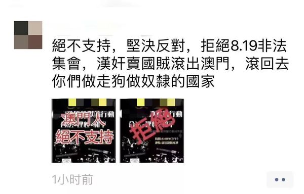 正在大家为之恼火时,小编发现澳门朋友在朋友圈刷屏,“绝不支持,坚持反对”,而起因是一张暴徒在澳门集会的海报,海报流出来后,澳门同胞第一时间朋友圈中转发,他们不支持,不参与集会,并坚决反对暴徒扰乱澳门!