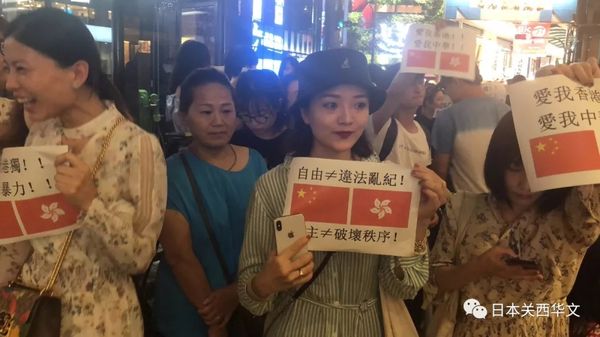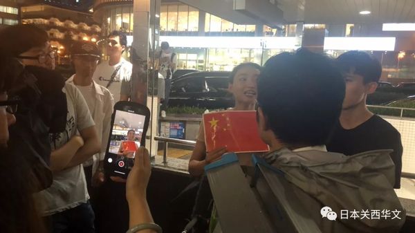 这次活动成功的另一个秘诀是:积极争取当地的日本民众,很多中国留学生用流利的日语向前来观看的日本人民介绍香港暴乱的真相,争取到了日本人民的理解和支持!不少日本当地民众慢慢地加入了中国留学生的队伍!开始的时候,前来采访的日本电视台记者的镜头只盯着港独队伍,不给中国留学生讲话的权利。为此,大阪的中国留学生主动与日本当地电视台打招呼,面对电视镜头,中国留学生们真有赵子龙的大将风度,通过中国留学生的阐述把香港暴乱的真相讲述给日本记者。听了中国留学生的讲述,日本记者开始陷入了沉思,不住地点头!